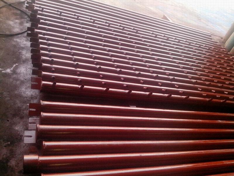 四、布袋除塵器噴吹管:脈沖布袋除塵器清灰用的噴吹管均采用無縫管,借助校直機進行直線度校正。噴吹短管(又稱噴嘴)與噴吹管的焊接采用了工裝摸具,二氧化碳保護焊接,減少變形,_噴吹短管間的形位公差。噴吹管下側正對濾袋中心設有噴吹口,每根噴吹管上均設有一個脈沖閥并與壓縮空氣分配器相通。噴吹管借助支架固定在上箱體中,并設備了定位銷,方便每次拆裝后的準確復位。同時采用文氏管或類似結構的零件對壓縮空氣進行導流,有助于壓縮空氣氣流方向的穩定,但文氏管或類似零件的結構會導致設備阻力的增加,我們采用的噴嘴有同樣的導流效果但沒有增加設備阻力之憂。