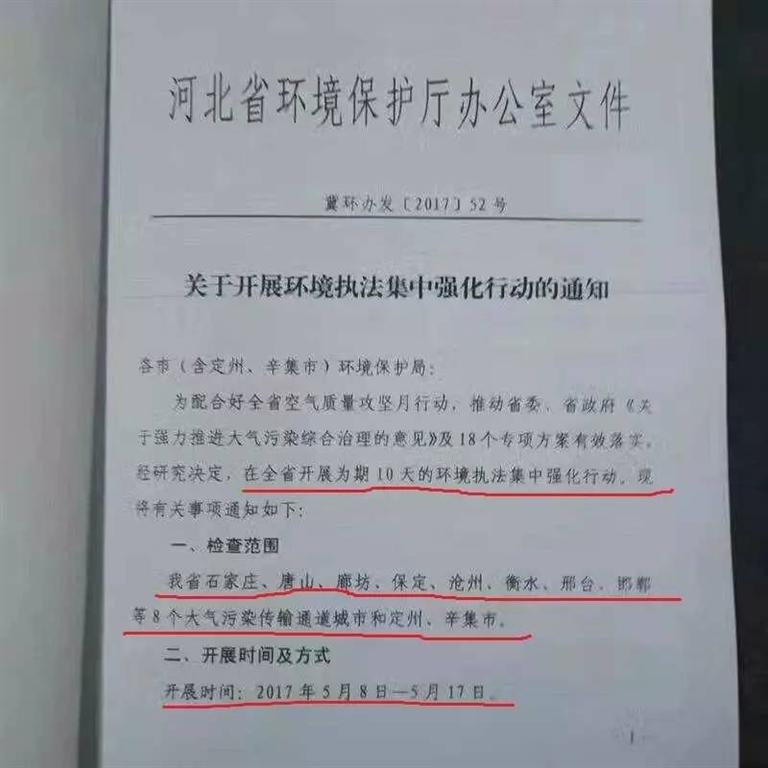 河北《關(guān)于開展環(huán)境執(zhí)法集中強化行動的通知》