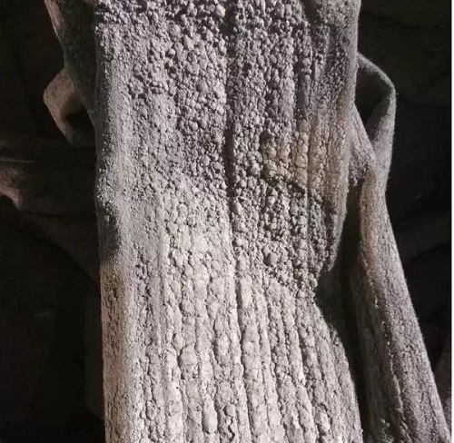 另一類使濾料受過高溫度作用,造成破損失效的情況發(fā)生在除塵器灰斗。當灰斗積灰過高,甚至掩埋了濾袋底部,致使濾袋底部長時間受高熱炙烤,_會造成濾袋破損。灰斗積灰過高通常發(fā)生在輸灰系統(tǒng)故障時,也包括灰斗下灰閥失效、灰斗內的灰無法下落、或者灰斗積灰棚架不能下落。但是如果灰斗設有高位料位計,并料位計工作正常,這種狀況an全可以及時發(fā)現(xiàn)并處理,不會導致濾袋受損。但部分企業(yè),為了節(jié)省費用,往往忽略了高位料位計的設置,也有的企業(yè)由于忽略了對料位計的定期校驗,造成料位計失效并且未及時發(fā)現(xiàn)處理,這些往往為灰斗高位積灰埋下隱患。